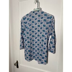 Roberta Roller Rabbit Block Print Blue Floral Cotton Tunic Top Blouse Small