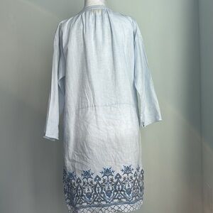 Roberta Roller Rabbit Blue 100% Linen Long Sleeve Pullover Tunic Dress XS