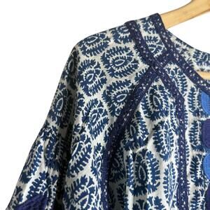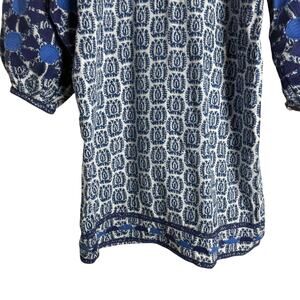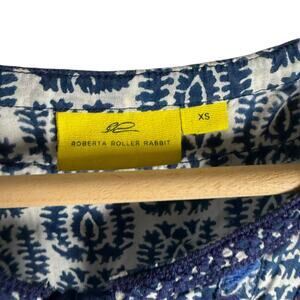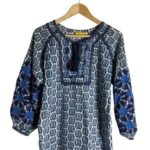 Roberta Roller Rabbit Blue Block Print Embroidered Long Sleeve Tassel Mini Dress