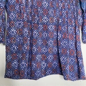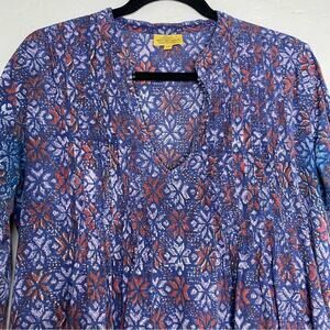 Roberta Roller Rabbit Blue Snowflake Pattern Beaded Trim V Neck Blouse XS