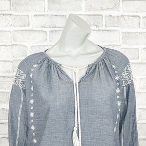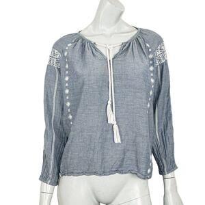 Roberta Roller Rabbit Women's Chambray Boho Blouse 100% Cotton Size Small