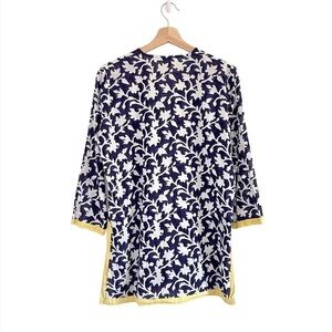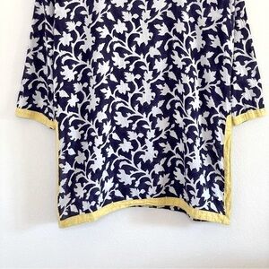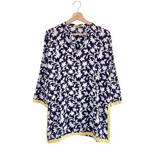 Roberta Roller Rabbit Kurta Tunic Boho Blouse in Blue / White Floral & Yellow, Size Small.