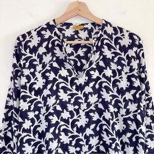 Roberta Roller Rabbit Cotton Kurta Tunic Boho Blouse Blue White Floral Small