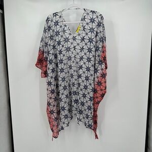 Roberta Roller Rabbit Cover-Up Tunic Top Coral Star Print OS Beach Pool Sheer