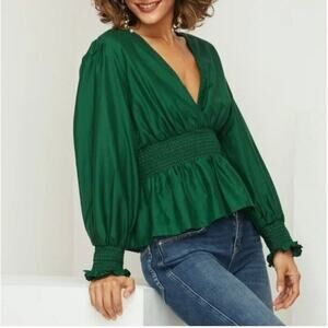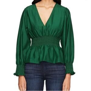 Roberta Roller Rabbit Deni Eden Green Smocked Long Sleeve Peplum Top Tuckernuck