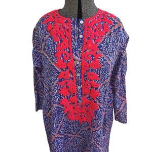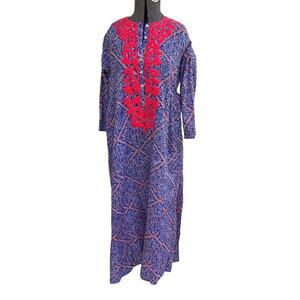 Roberta Roller Rabbit Embroidered Kurta Kaftan Maxi Inez Dress Size Small EUC