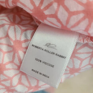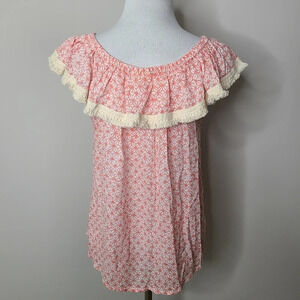 Roberta Roller Rabbit pink and white floral print off shoulder Top with offwhite Fringe trim detail. can be worn on or off shoulder. Excellent preowned condition