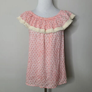 Roberta Roller Rabbit pink and white floral print off shoulder Top with offwhite Fringe trim detail. can be worn on or off shoulder. Excellent preowned condition