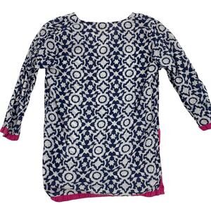 Roberta Roller Rabbit Girls Navy & White Geometric Print Pink Trim Top 8