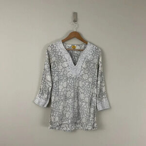 Roberta Roller Rabbit Gray White Floral Embroidered Top Size XS