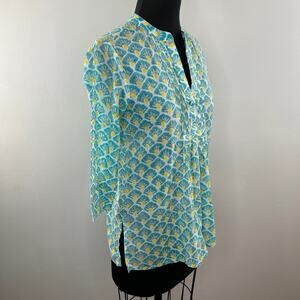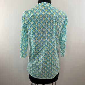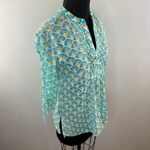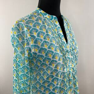 Roberta Roller Rabbit Green White Yellow Print Pintuck Cotton Tunic Top Size XS