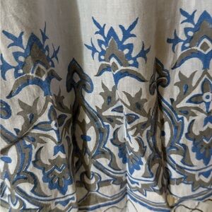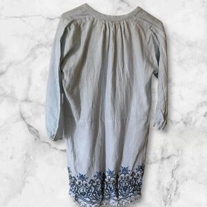 Light, breathable, and effortless. This Roberta Roller Rabbit dress features soft blue fabric with blue embroidered hem detail, a relaxed shift fit, split neckline, and 3/4 sleeves. Easy throw-on style—perfect for vacation, brunch, or everyday comfort.