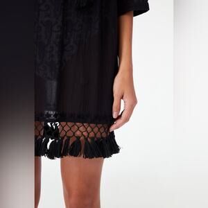 Roberta Roller Rabbit Lucknow Serafina Tunic Black Tassel Swim Cover Up Size M