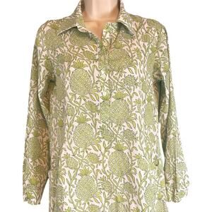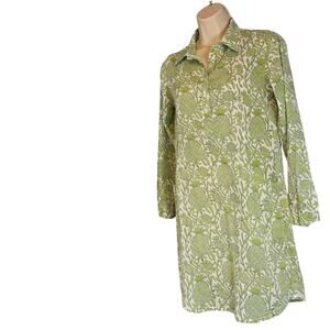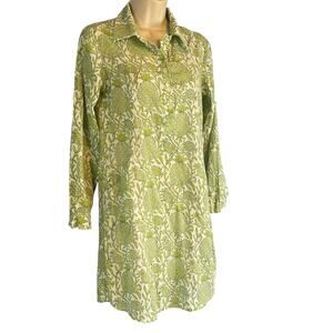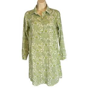 Roberta Roller Rabbit Pineapple Print Long Sleeve Collared Dress Green White XS