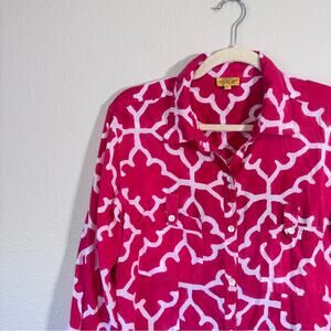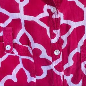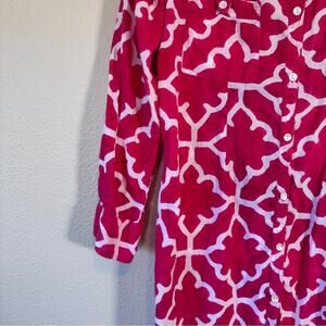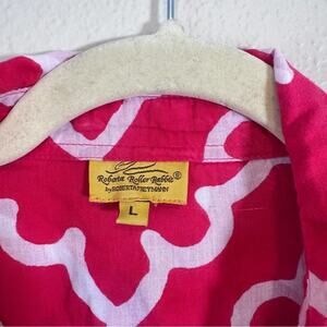 Roberta Roller Rabbit Pink White Print Cotton Shirt Dress Womens L Button Down