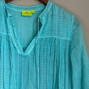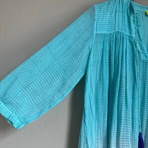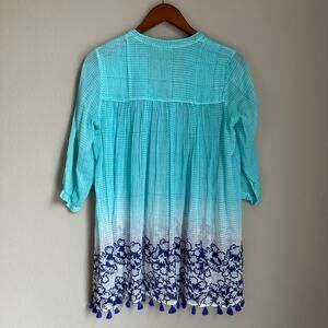 Roberta Roller Rabbit Sheer Ombre Tunic Top Boho V Neck Tassels Resort Beachy