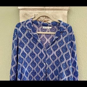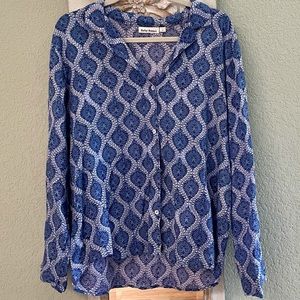 Beautiful lightweight shirt. Gorgeous pattern and very soft. Pit to pit measurement is 22.5โ and the length is 25โ in the front and 28โ in the back.