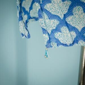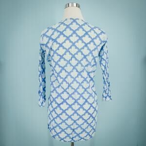 Roberta Roller Rabbit Size Small S Blue Scallop Shell Print V Neck Long Sleeve Resort Vacation Lightweight 100% Cotton Tunic Cover Up Dress Top