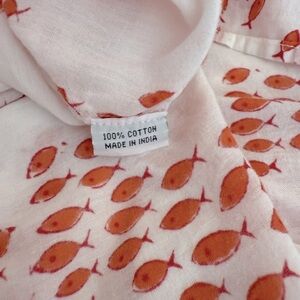 Great lightweight whimsical fish patterned long cotton short to toss over a swim suit. Roberta Roller Rabbit vintage. Size tag missing but fits like a 10. See measurements in photos.