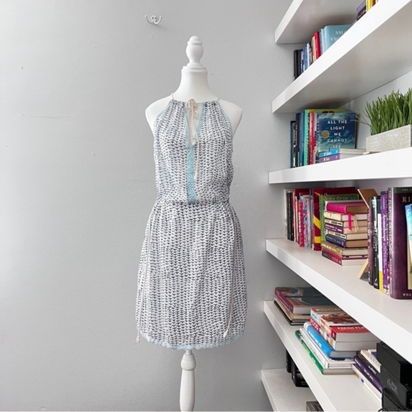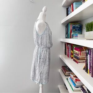 Roberta Roller Rabbit White Blue Block Print Halter Neck Cotton Dress Large