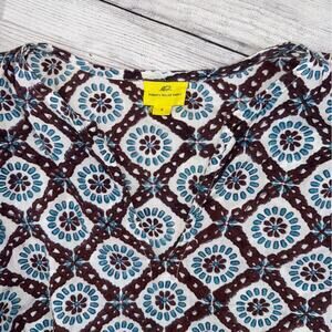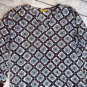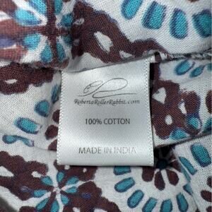 Roberta Roller Rabbit Women's Cotton Tunic Top Brown Turquoise Print Size Small
