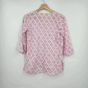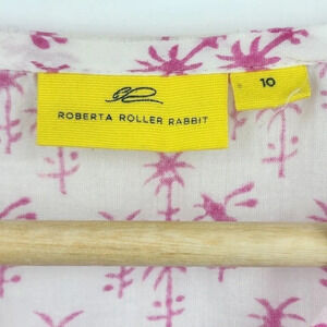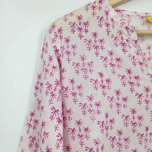 Roberta Roller Rabbit Women's Pink Palm Print Cotton Short Sleeve Shirt Size 10