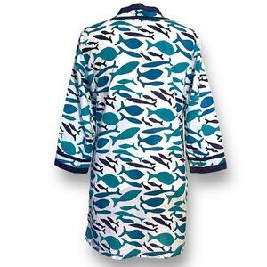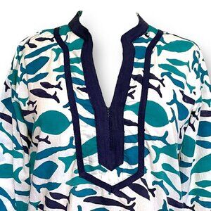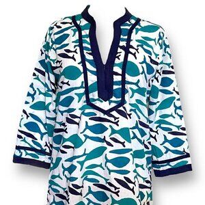 Roberta Roller Rabbit Womens Tunic Top Sz S Blue White Fish Print Beach Cover Up