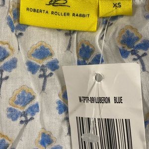 New Roberta Roller Rabbit blouse lightweight. Beautiful white and blue and some yellow flowers . Size XS .3/4 leaves length .