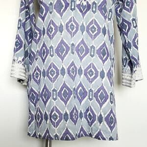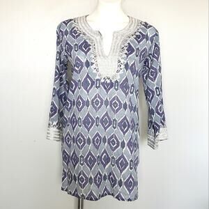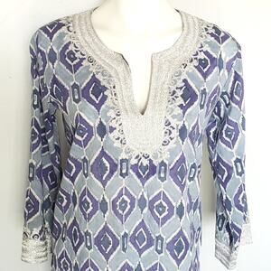 Roberta Roller Rabbit blue ikat silver embellished cotton tunic S