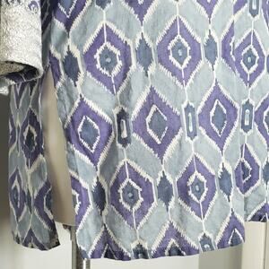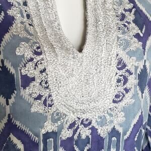 Roberta Roller Rabbit blue ikat silver embroidered cotton tunic, size Small