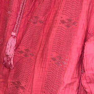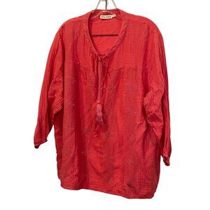 Roberta Roller Rabbit hot pink embroidered ikat tassel tie tunic top L