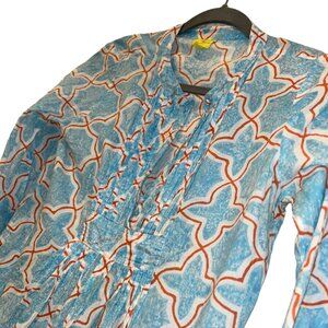 Roberta Roller Rabbit turquoise red Moroccan Tile Print cotton tunic dress XS
