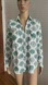 Gorgeous details, image of blue-green peacocks. Collared button-up.