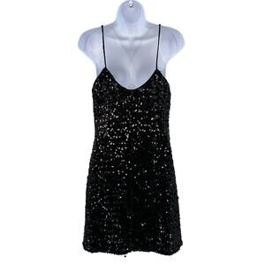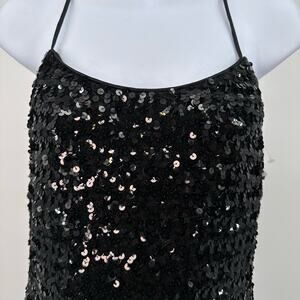Roberta VTG 90's Black Sequin Dress Sparkly Stretch Cocktail Party Dress 14 Mini