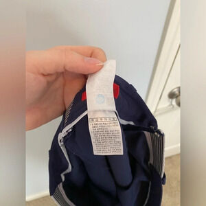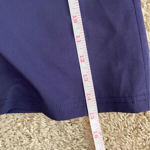 Excellent condition. No noticed flaws. Based on the measurements, I believe this would fit a medium best. Shorts built into the skirt.