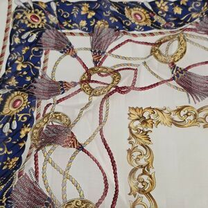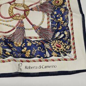 Vintage Roberta Di Camerino Royal Baroque Tassels Print Cotton Handkerchief Neckerchief Pocket Square Bandana.