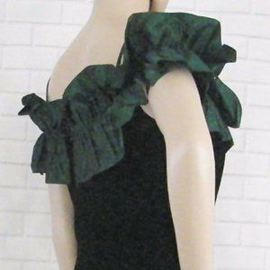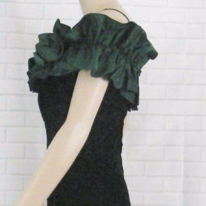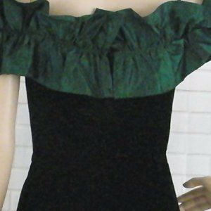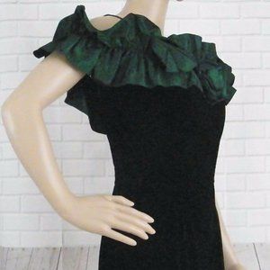 Roberta of California Dress Size 7/8 Vintage 80s Black Velvet Green Ruffle