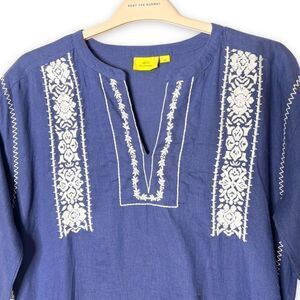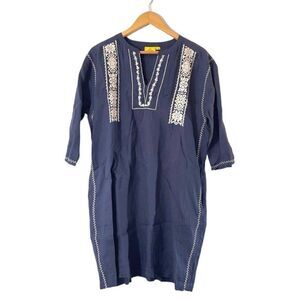 Roberta Roller Rabbit Embroidered Tunic Shift Mini Dress V Neck Blue Size XS