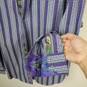 Blue tones with contrasting colors typical of robert graham designs. 100% cotton