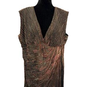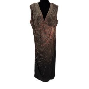 Roberto Cavalli, beaded gown, embellished silk dress, formal, black tie, gala, red carpet, bronze beading, sunburst, draped, V-neck, maxi, Italian designer, authentic.