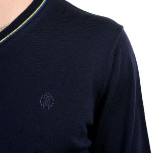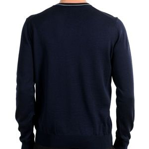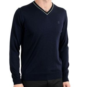 ROBERTO CAVALLI MEN'S 100% WOOL DARK BLUE V-NECK SWEATER Country/Region of Manufacture:Italy Retail Value: $210.00 This is authentic Roberto Cavalli Men's 100% Wool Dark Blue V-Neck Sweater SKU: KJ-16045 Model: ESM612MQ03004926 Material: 100% Wool