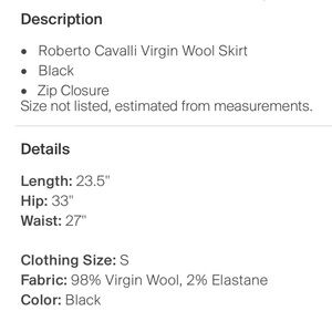 Roberto Cavalli Black Wool Stretch Blend CREPE PENCIL SKIRT Size 44 = 8 (Med)