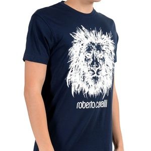 This is authentic Roberto Cavalli Men's Blue Graphic Lion Crewneck T-Shirt