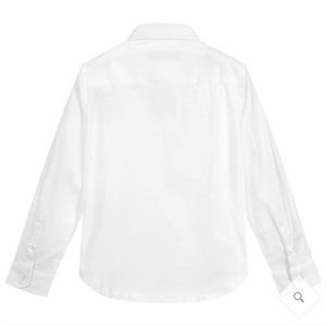 The designer's logo is embroidered in white on the front for recognizable luxury. For any formal occasion, any little man will look fashionable and ready to take on the day with this button up!