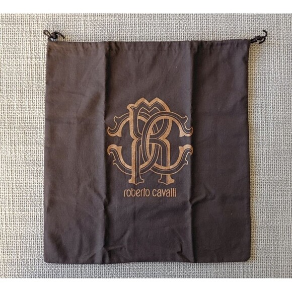Roberto Cavalli Brown Drawstring dust bag shoes handbag L | Mint 13.5”x14.5"