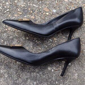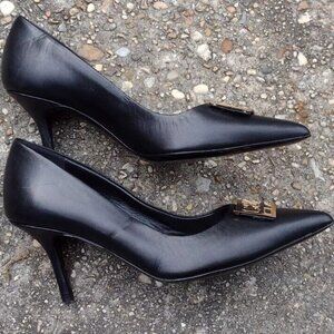 #RobertoCavalliClass #DesignerShoes #BlackLeatherPumps #GoldBuckle #StilettoHeels #LuxuryShoes #ItalianMade #PointedToe