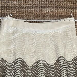 Elegant maxi skirt by Roberto Cavalli. Features a cream and black wave pattern. Perfect for a sophisticated look.