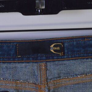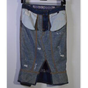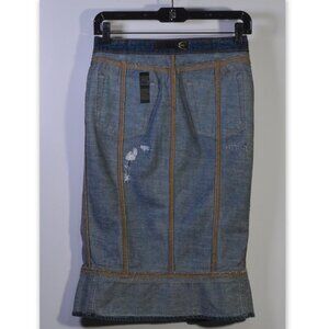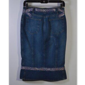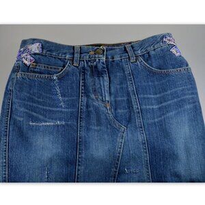 Roberto Cavalli Denim Jeans Embroidered Ribbon Skirt Size 40