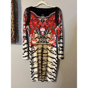 Roberto Cavalli Dress Long Sleeve Stretch Silk Animal Flowers Small Luxury $1250