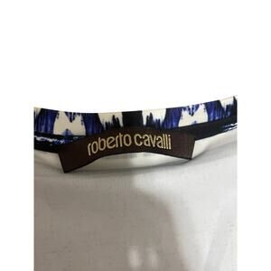 Roberto Cavalli Dress US 12/ IT 48 Blue White Black Geometric Print Sheath
